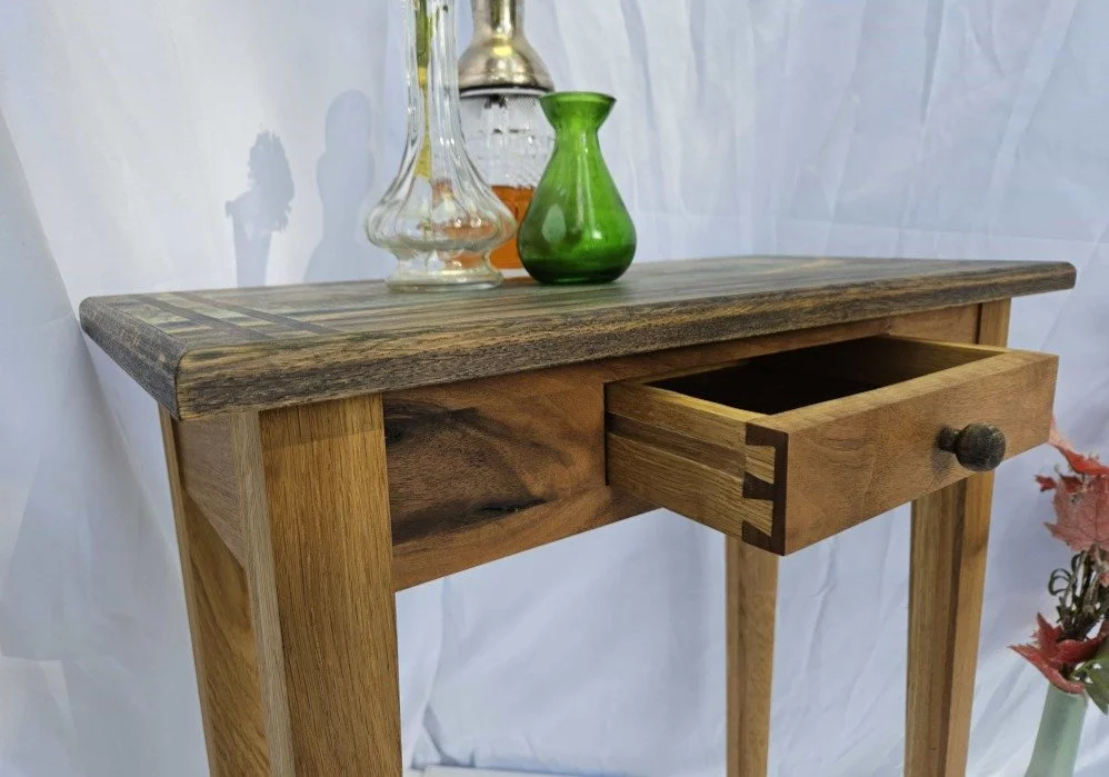 Hoogwaardige materialen worden zorgvuldig ingekocht bij de houthandel. Van het ruwe hout worden alle onderdelen op maat gemaakt. Vervolgens wordt het complete meubel in elkaar gezet en afgewerkt.